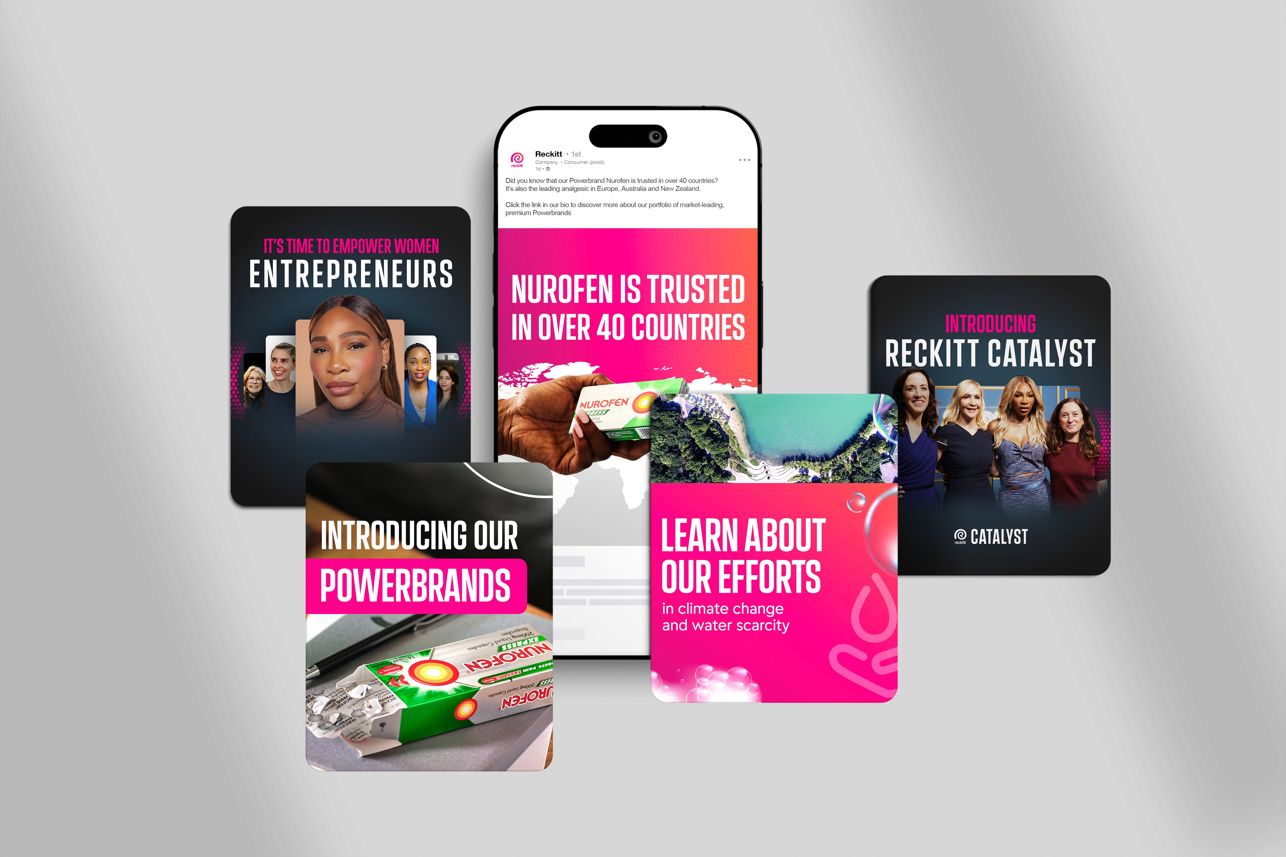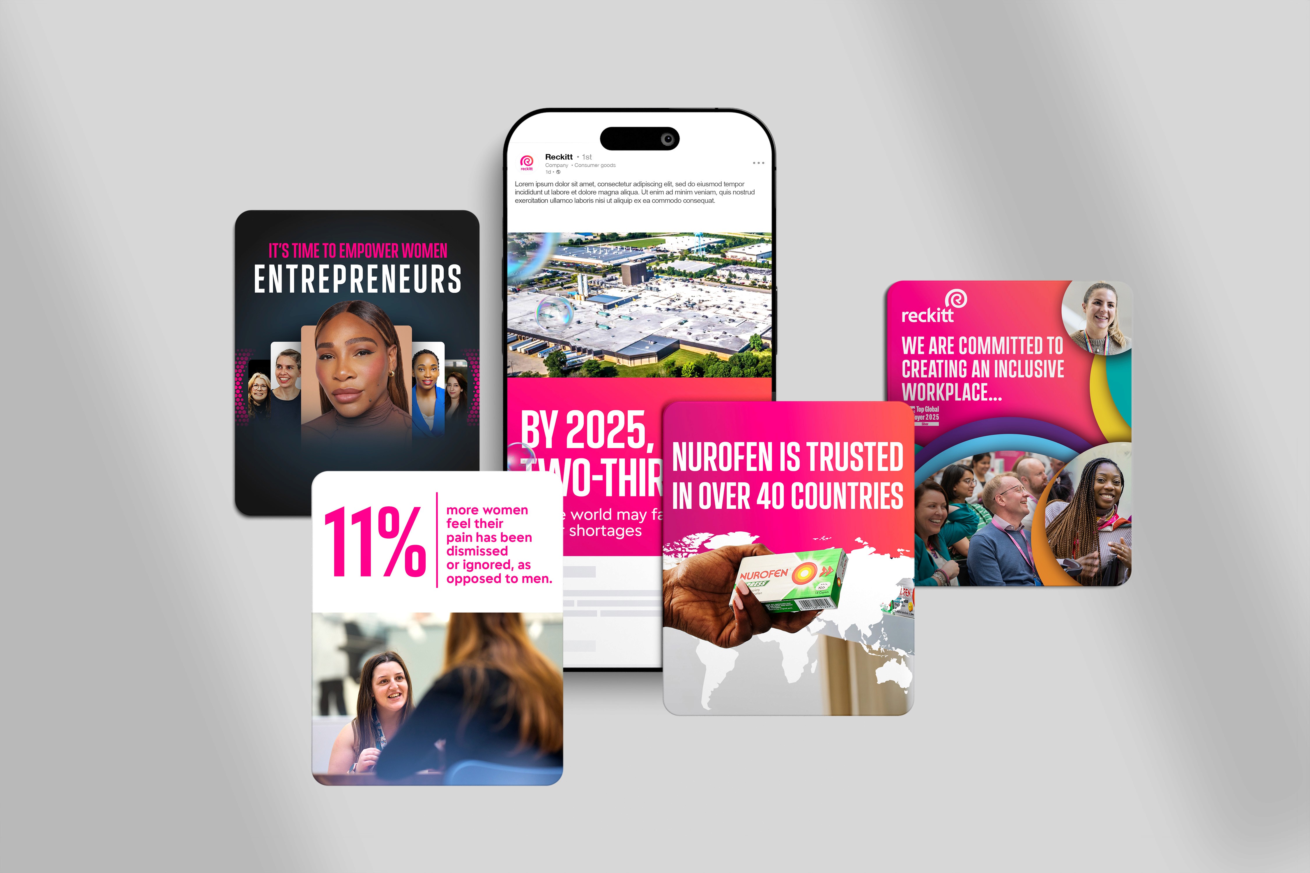 Our main objectives for Reckitt have been two-fold. One; to increase engagement and grow organically on social platforms such as Meta and LinkedIn. We also wanted the educate and grow awareness of Reckitt as a brand as well as their people and product innovations in the market. We did this by curating and rolling out a content calendar, creating richer and more engaging pieces for their website as well as crafting a beautiful visual style that ties the brand together.